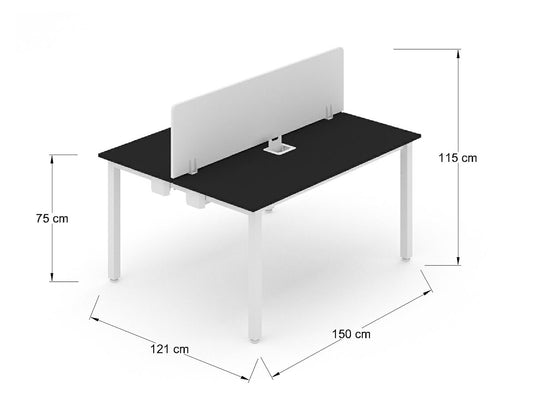 - Cubiertas de laminado plástico (melamina) de 28mm, cubre canto de pvc pegado o termo fundido. Cuenta con pasa cables metálico abatible al color del chasis.