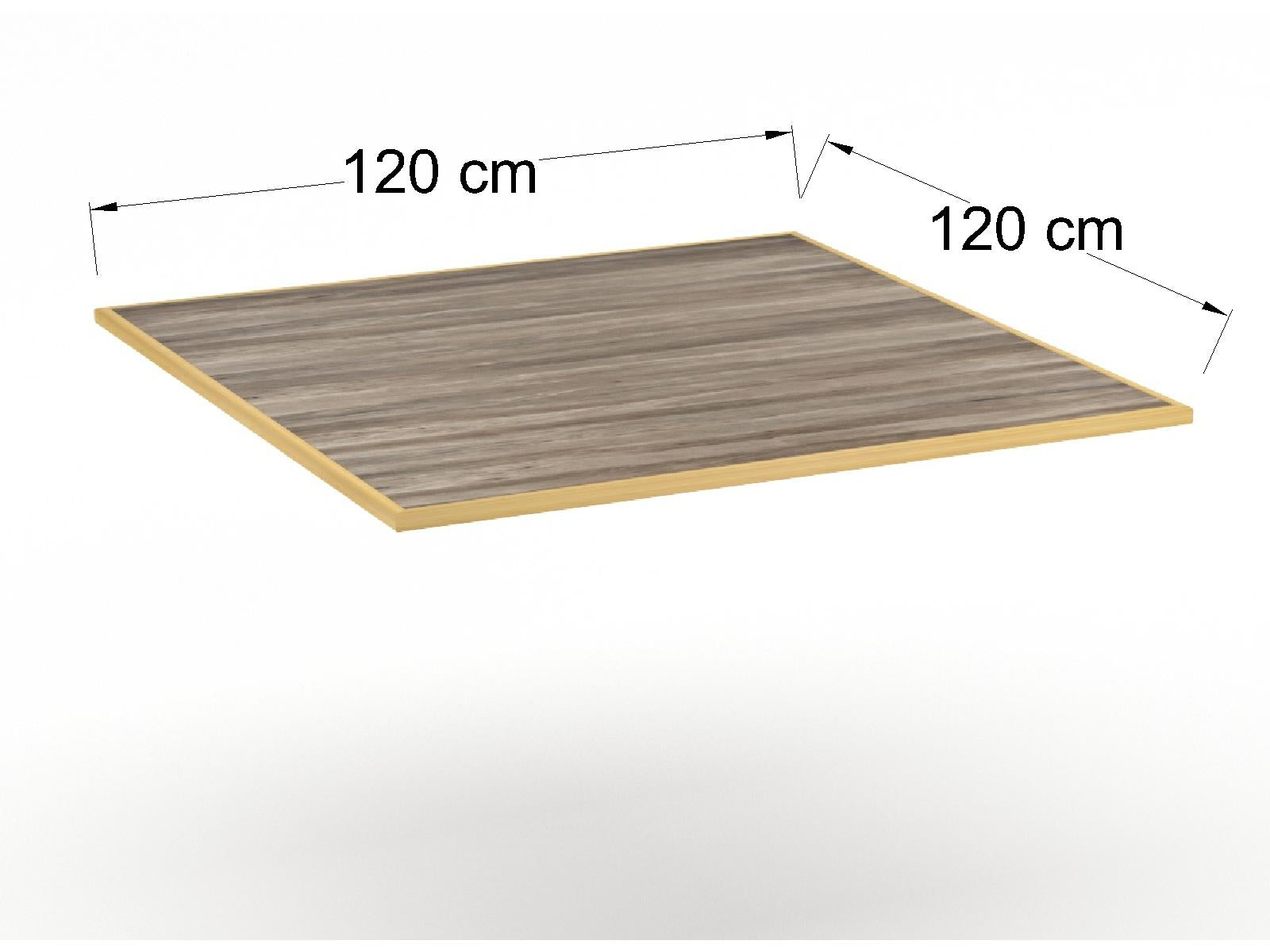 Cubierta para mesa de Restaurante fabricada en Laminado plástico de 19mm o 28mm , cantos de madera de 120cm X 120cm.