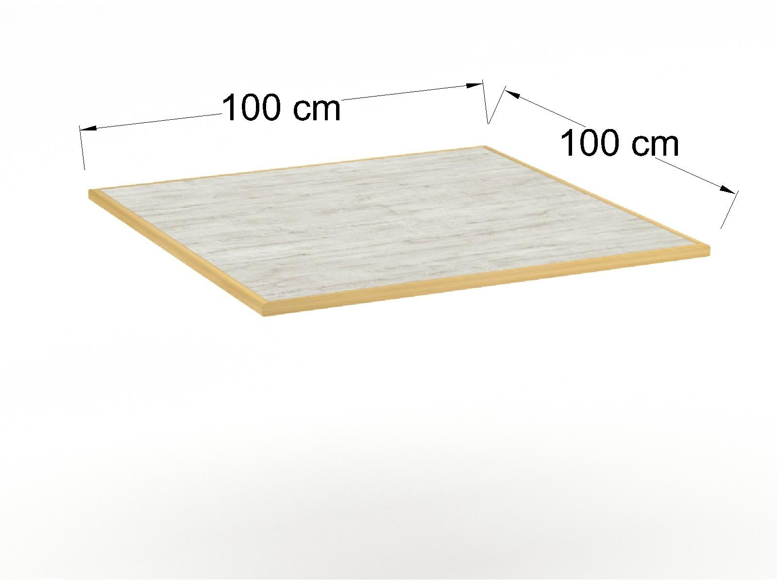 Cubierta para mesa de Restaurante fabricada en Formaica sobre tablero de 19mm o 28mm, cantos de madera de 100cm X 100cm