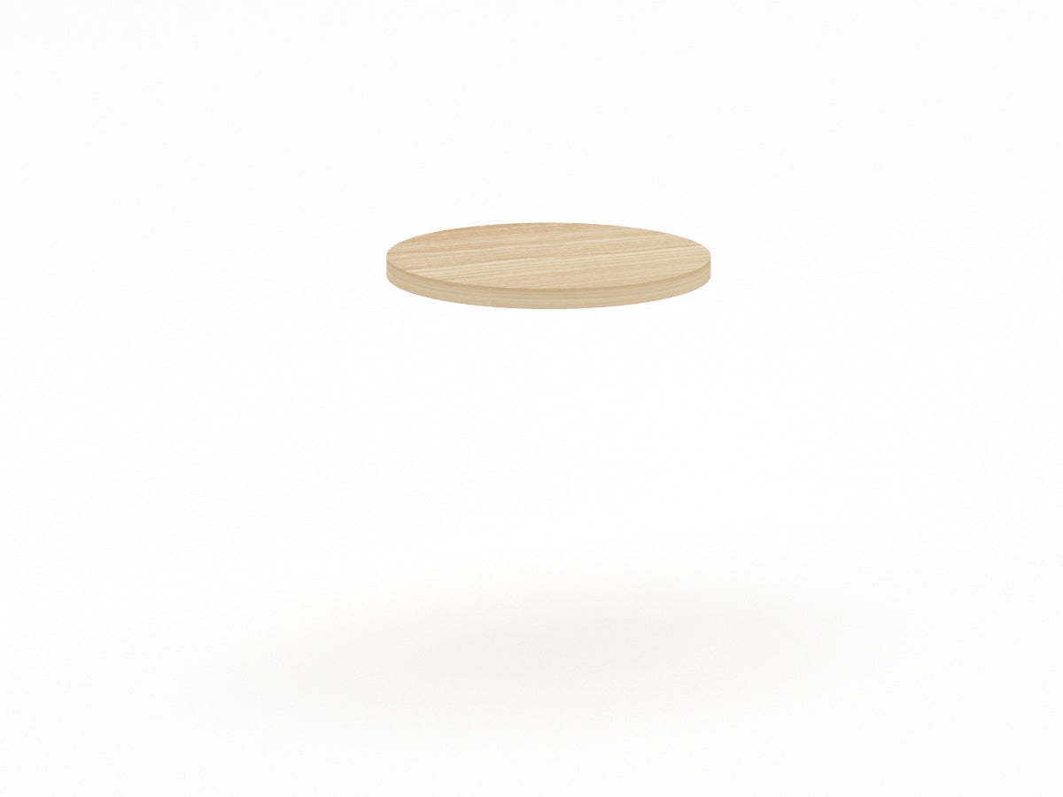 Cubierta para mesa de Restaurante fabricada en MDF de 18 mm o en MDF engrosado a 28mm con terminado en chapa de encino o parota de 60cm diametro.
