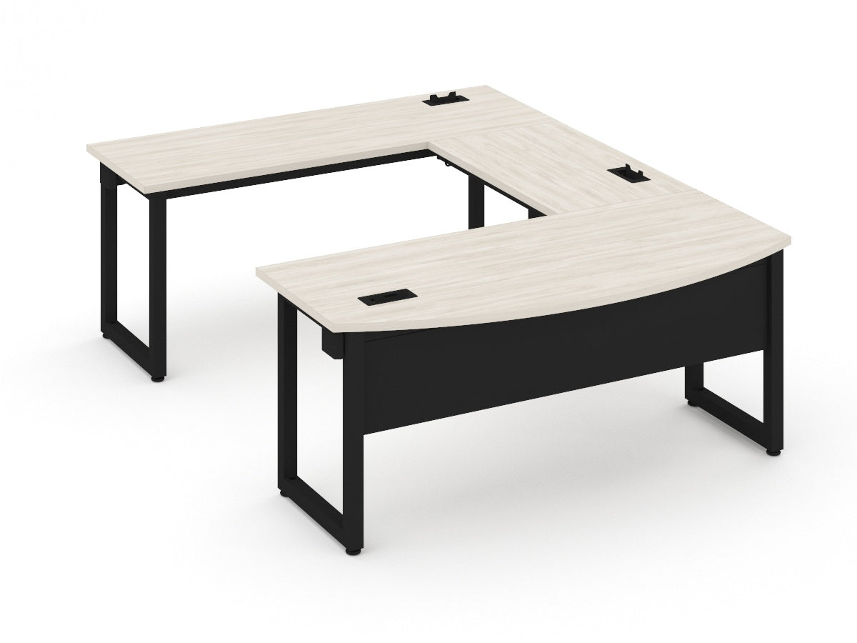 Modulo ejecutivo curvo cubiertas de 180x80 y lateral de 100x60 en 28mm de espesor, base metalica en forma de marco con trabe pasacables incluido el escritorio frontal.