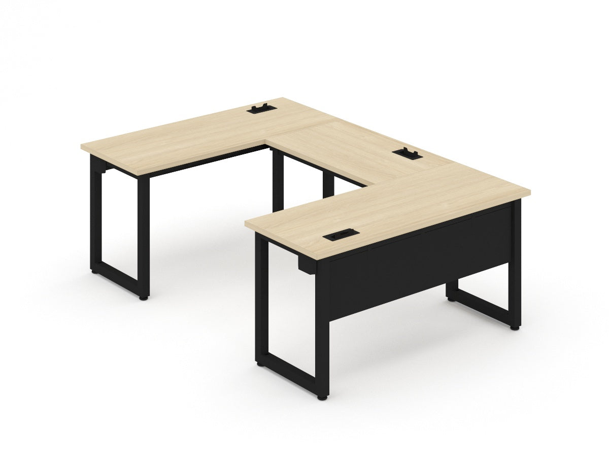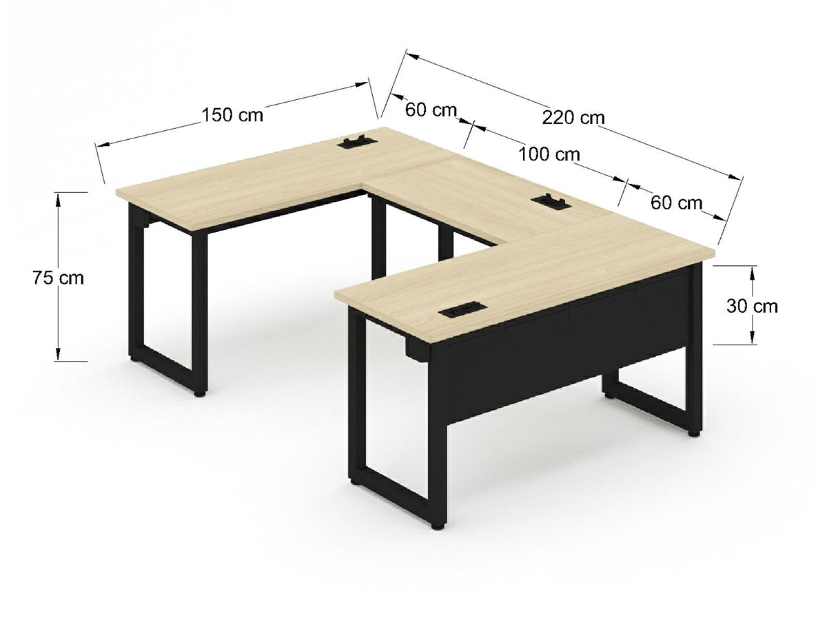 Modulo ejecutivo recto cubiertas de 150x60 y lateral de 80x60 credenza de 150x60 en 28mm de espesor, base metalica en forma de marco con trabe pasacables incluido el escritorio frontal.
