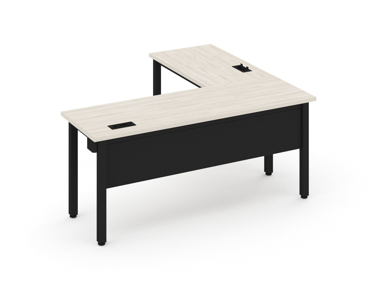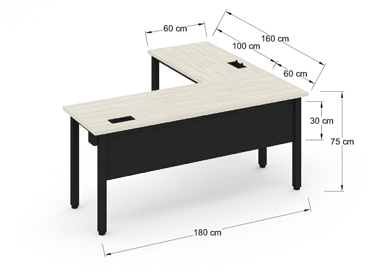 Escritorio individual recto con lateral de 180x160cm en 28mm, base metalica en forma de grapa con trabe pasacables y faldon incluidos.