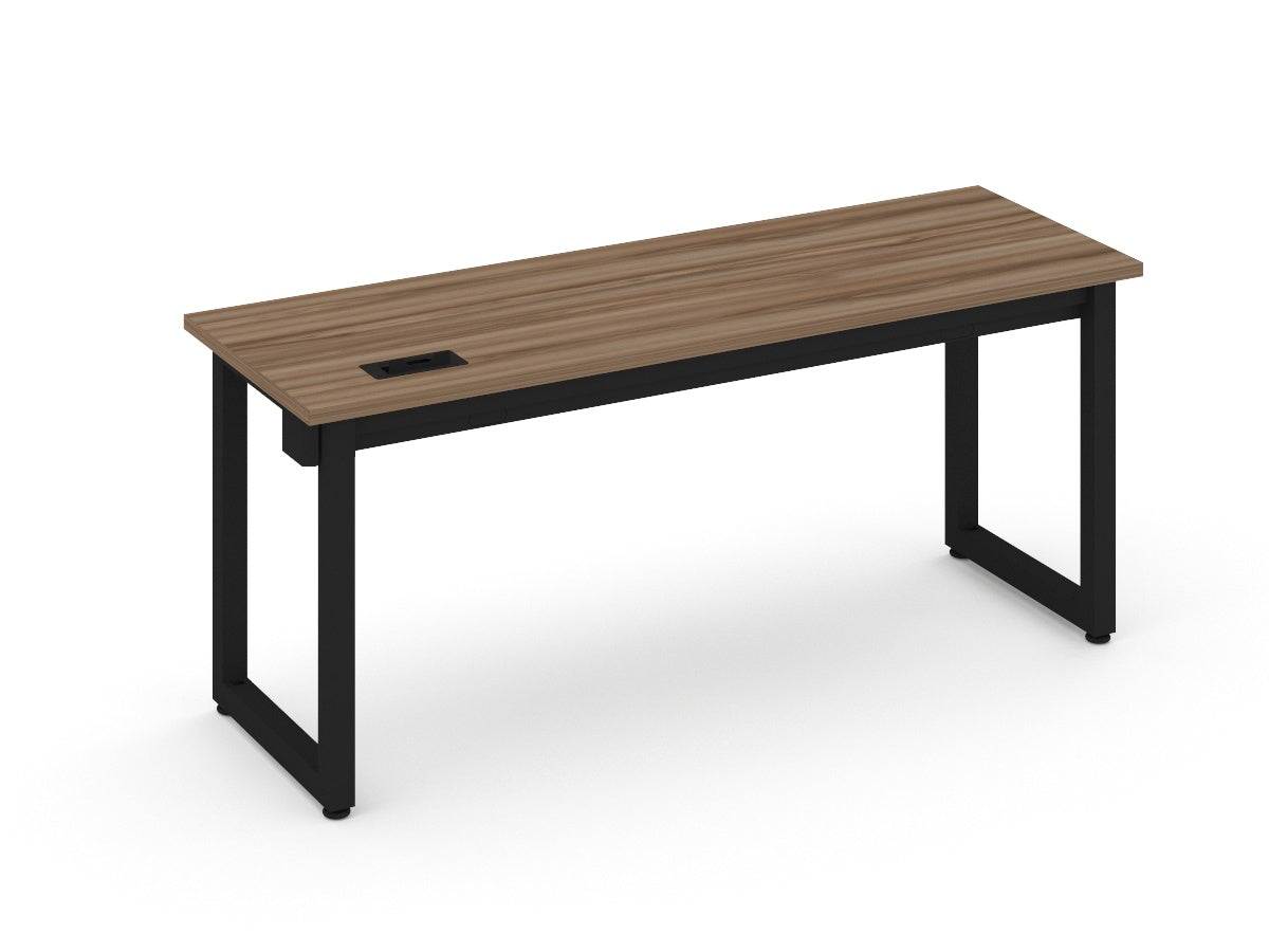 Escritorio individual recto cubierta de 180x60 en 28mm, base metalica en forma de marco con trabe pasacables incluido.