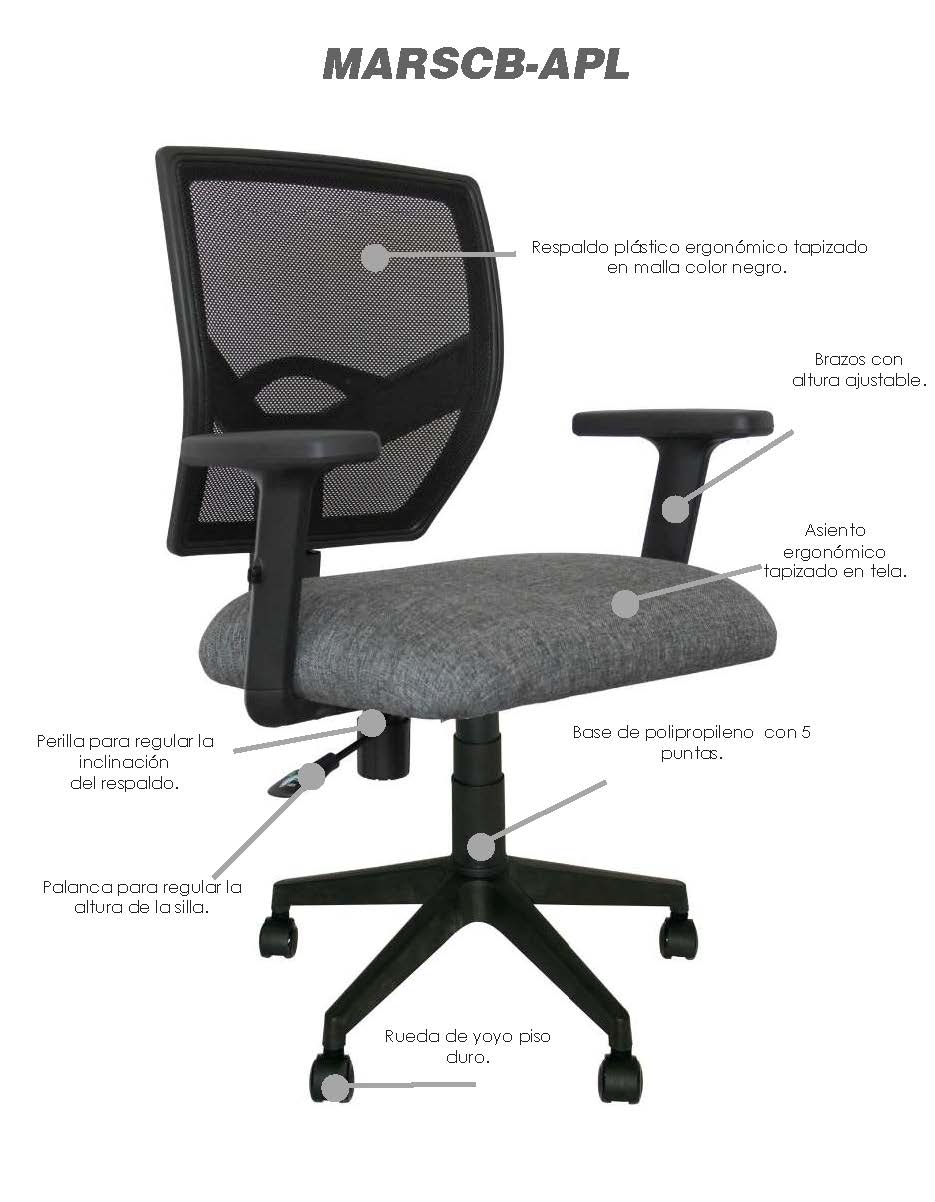 Silla secretarial de respaldo plástico medio tapizado en malla negra
