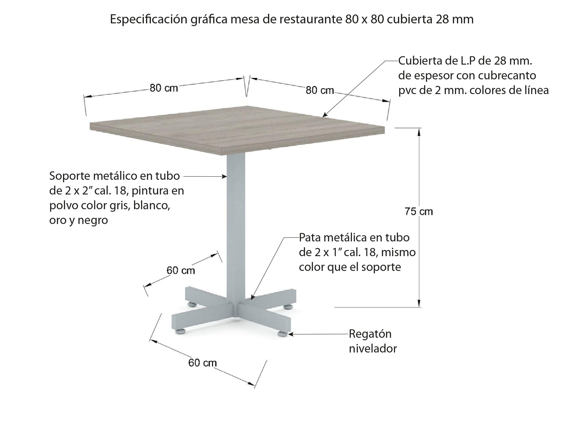 Cubierta para mesa de Restaurante de 80 x 80cm fabricada en Laminado plástico de 19mm o 28mm, cubrecanto pvc