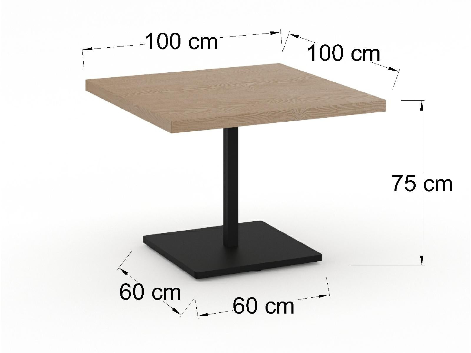 Mesa de Restaurante o Cafeteria, cubierta de forma cuadrada con base en forma de plato.