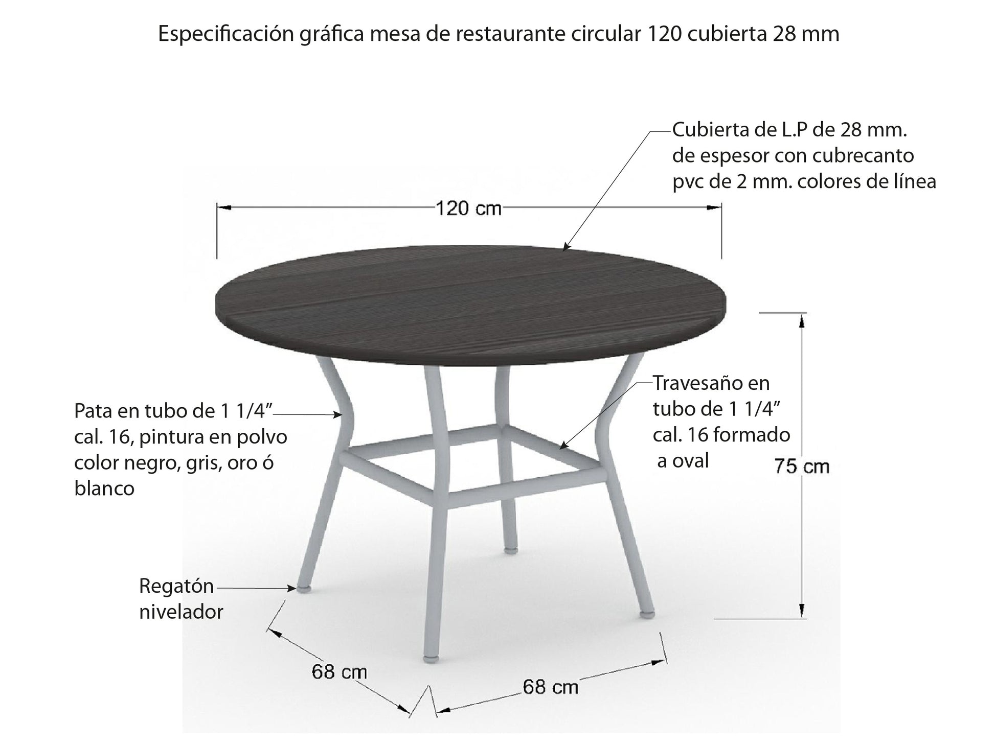 Cubierta para mesa de Restaurante fabricada en Laminado plástico de 19mm o 28mm, cubrecanto pvc de 120cm diametro