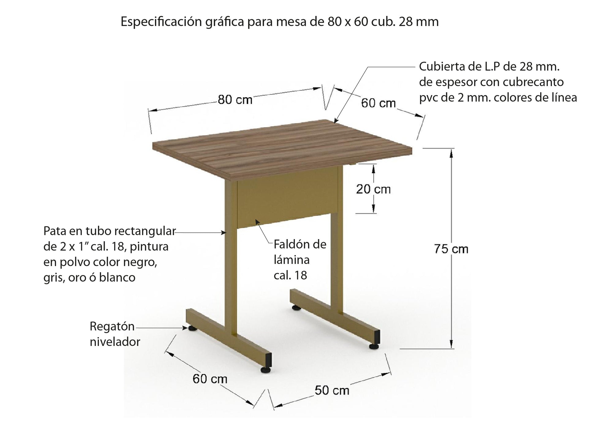 Cubierta para mesa de Restaurante fabricada en Laminado plástico de 19mm ó 28mm, cubrecanto pvc de 80cm X 60cm