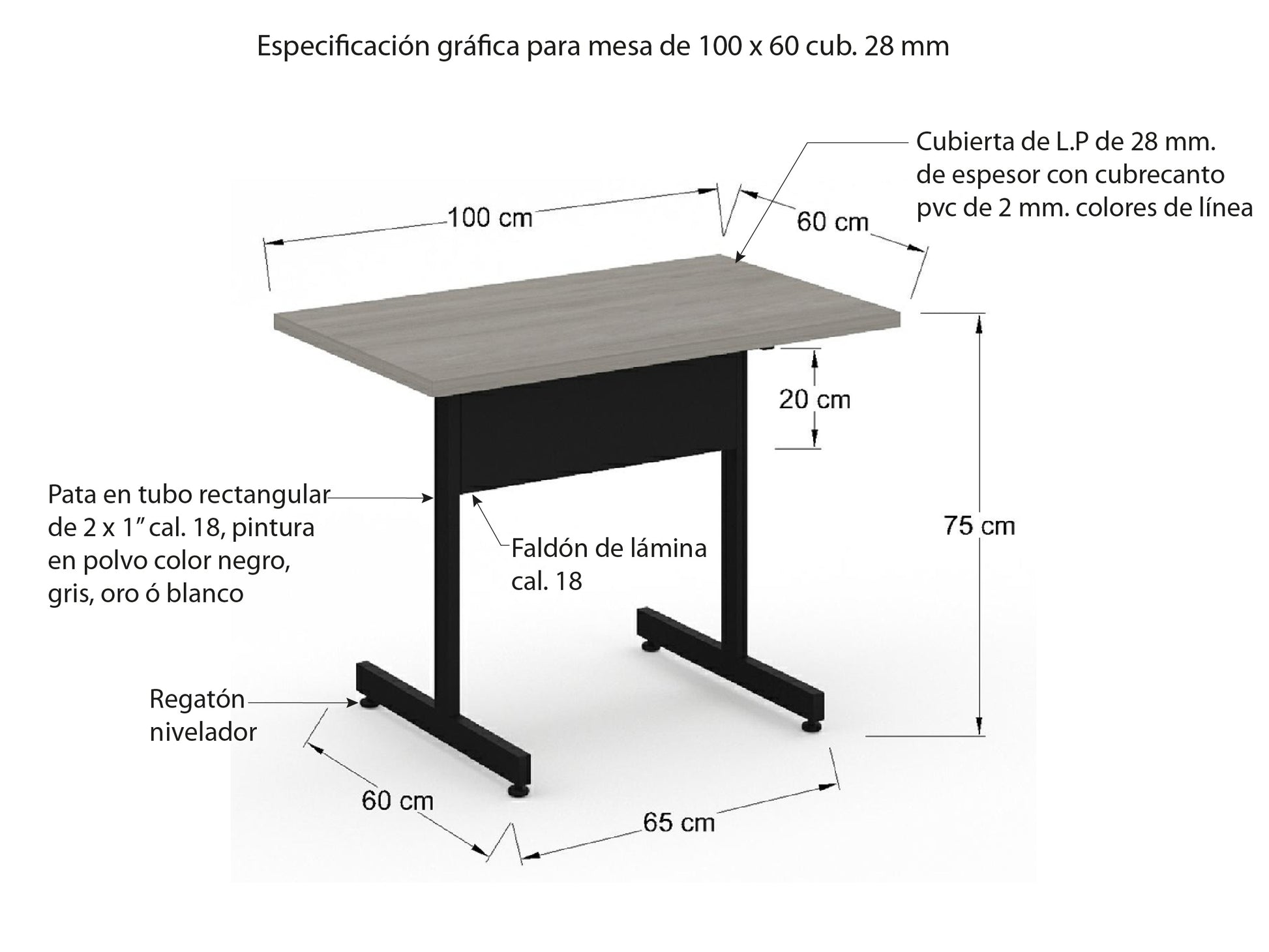 Cubierta para mesa de Restaurante fabricada en Laminado plástico de 19mm ó 28mm, cubrecanto pvc de 100cm X 60cm