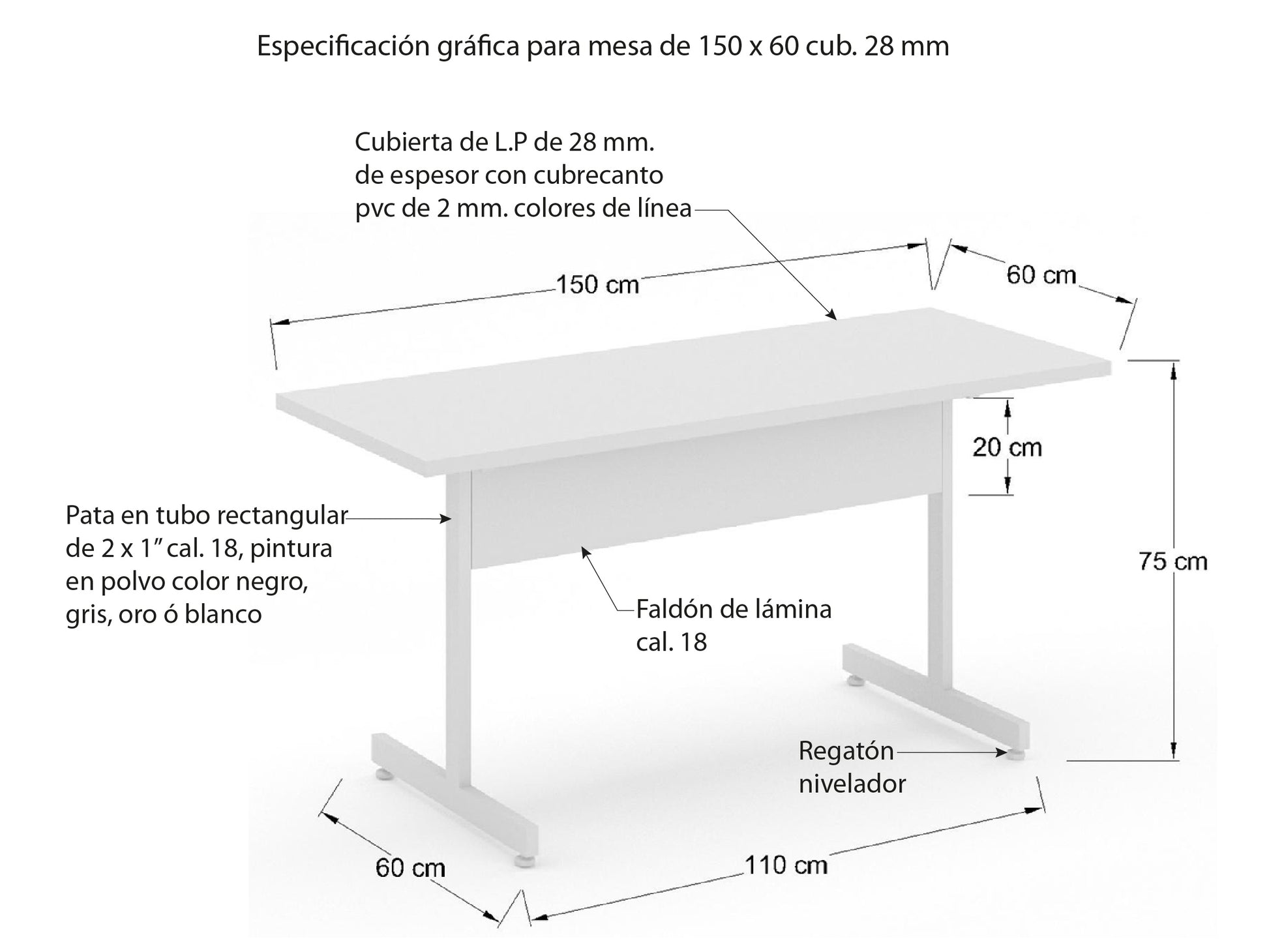 Cubierta para mesa de Restaurante fabricada en Laminado plástico de 19mm ó 28mm, cubrecanto pvc de 150cm X 60cm