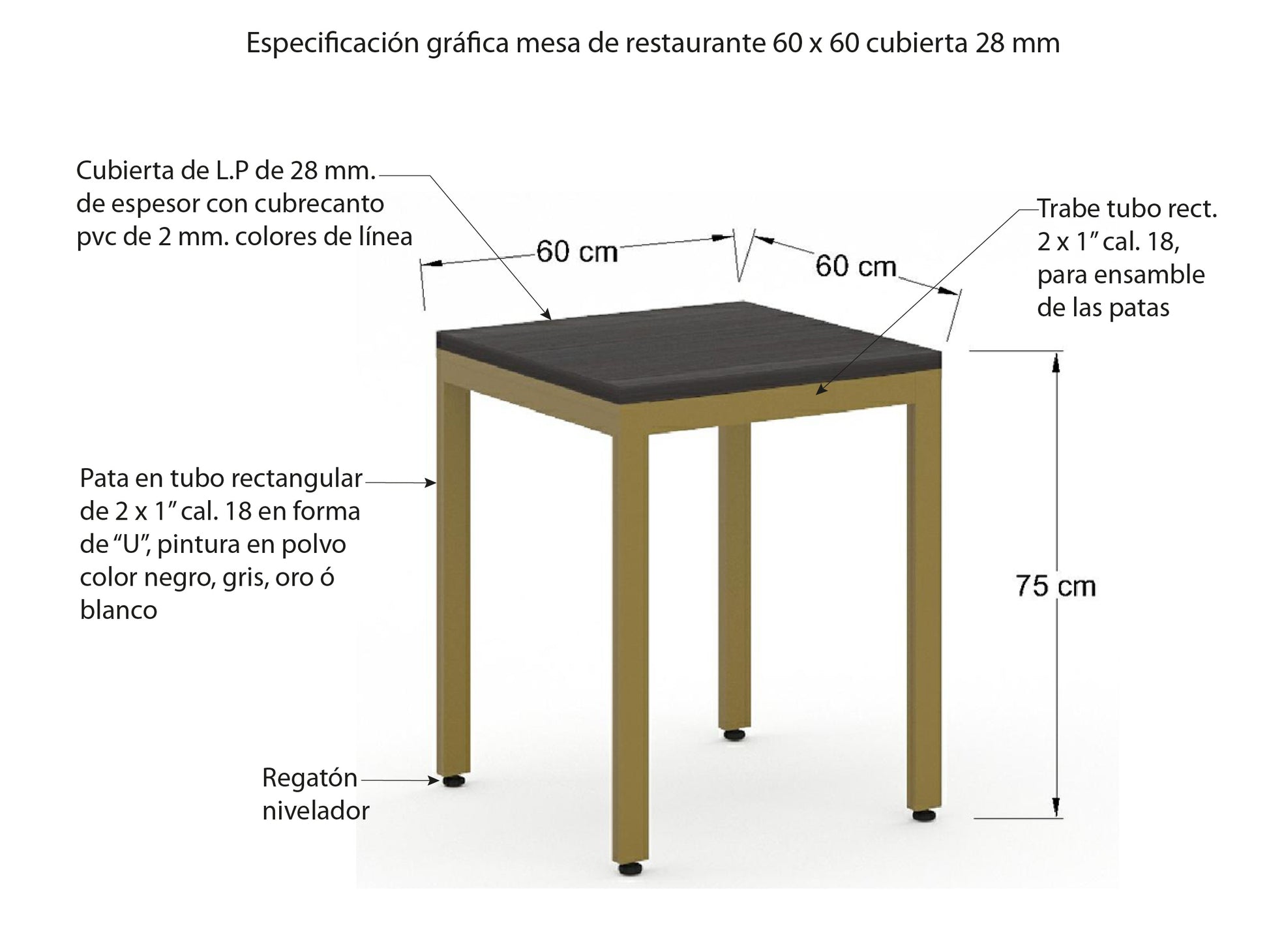 Cubierta para mesa de Restaurante fabricada en Laminado plástico de 19mm ó 28mm, cubrecanto pvc de 60cm X 60cm