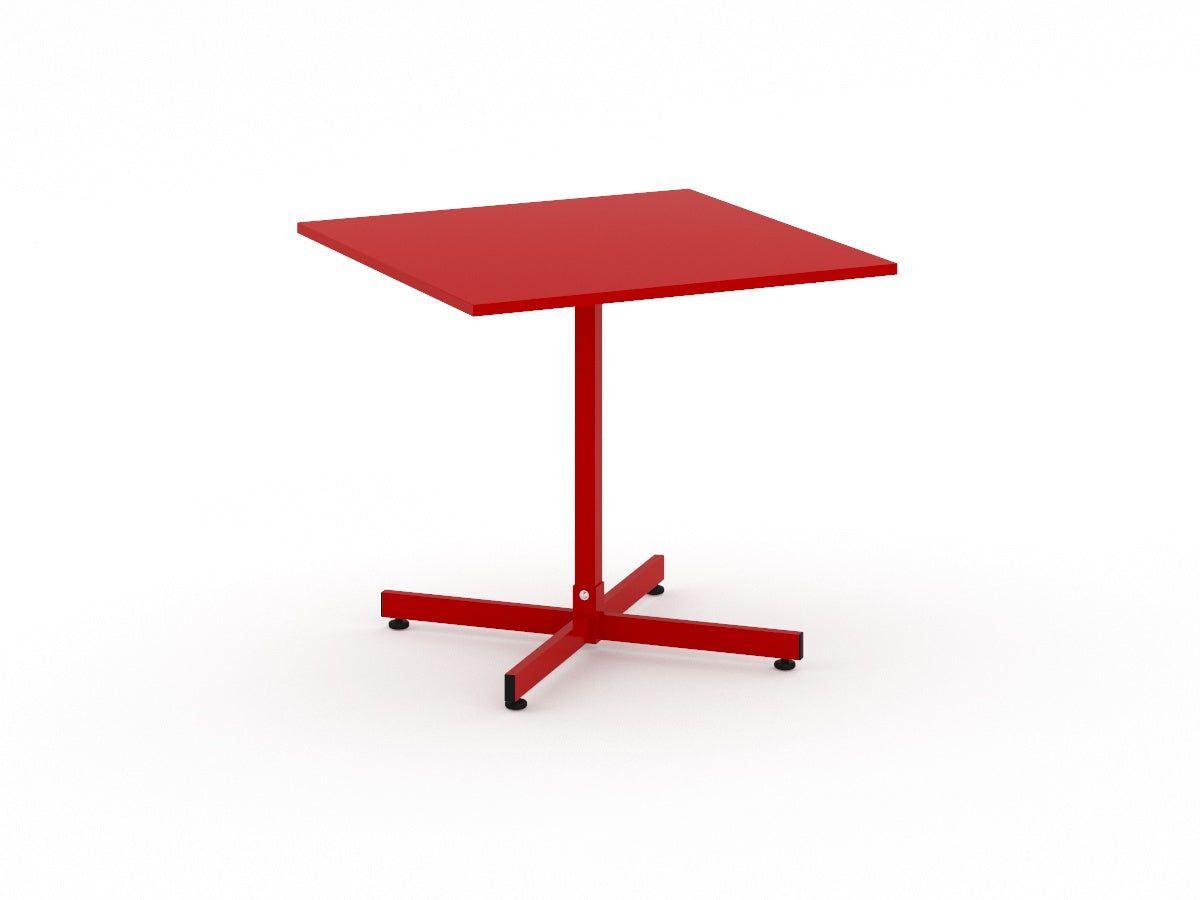 Mesa de Restaurante o Cafeteria, cubierta metálica de forma cuadrada con base de 4 puntos