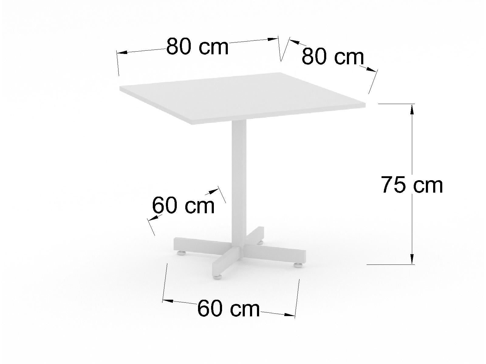 Mesa de Restaurante o Cafeteria, cubierta metálica de forma cuadrada con base de 4 puntos