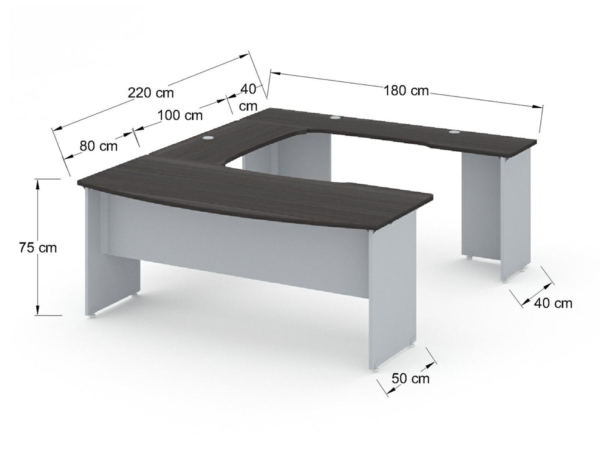 Paquete Qualium consta de: escritorio de 180 x 80 cm , lateral de 100 x 50 cm y credenza de 180 x 40 cm. Con soportes rectos de L.P Dimension Total: 180cm x 220cm x 75cm.