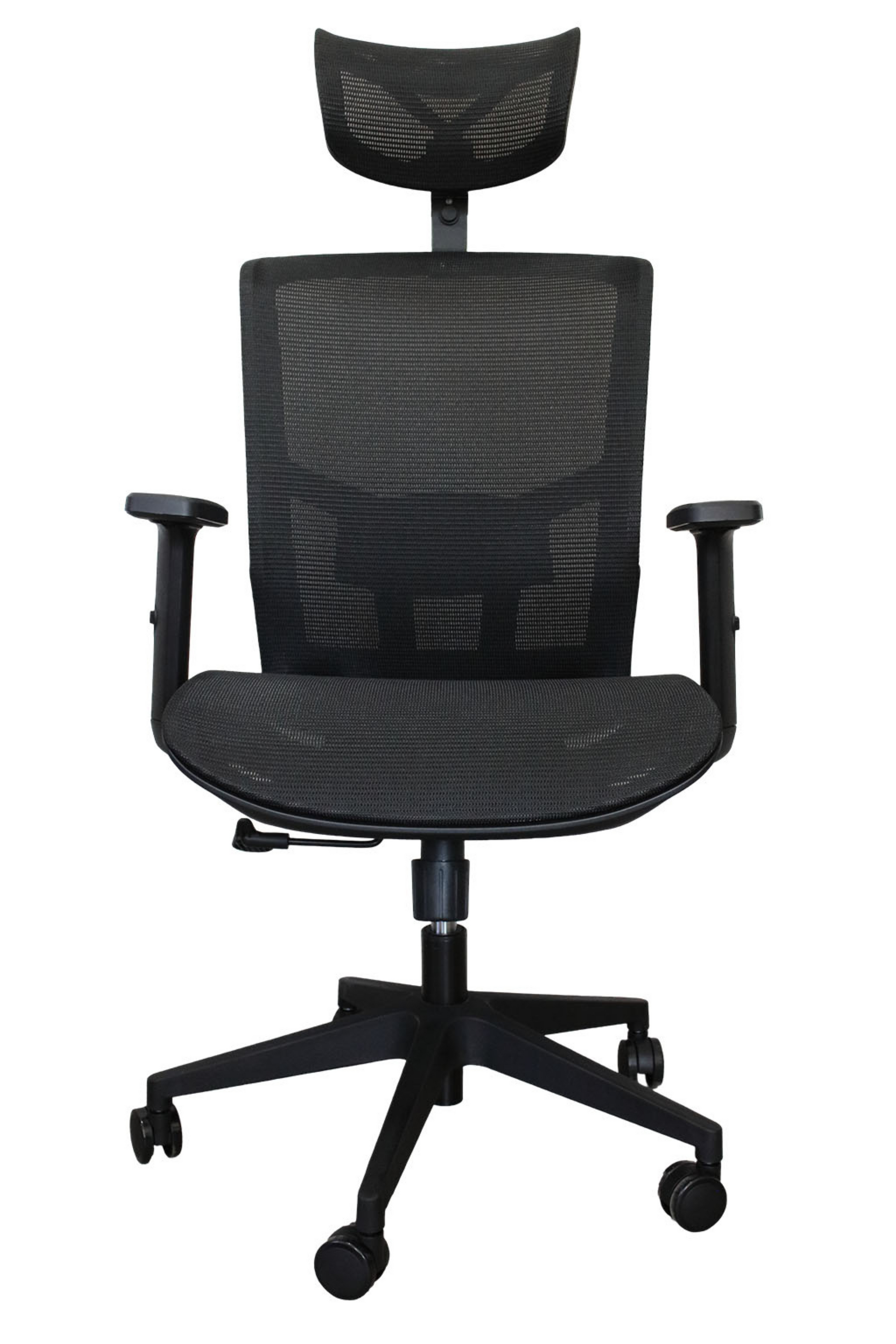 Silla Directiva con cabecera en malla color Negro, respaldo ergonómico en malla color Negro, cuerpo en color negro, asiento en malla, brazos ajustables en altura, regulación de altura, ajuste de tensión, base de Polipropileno.