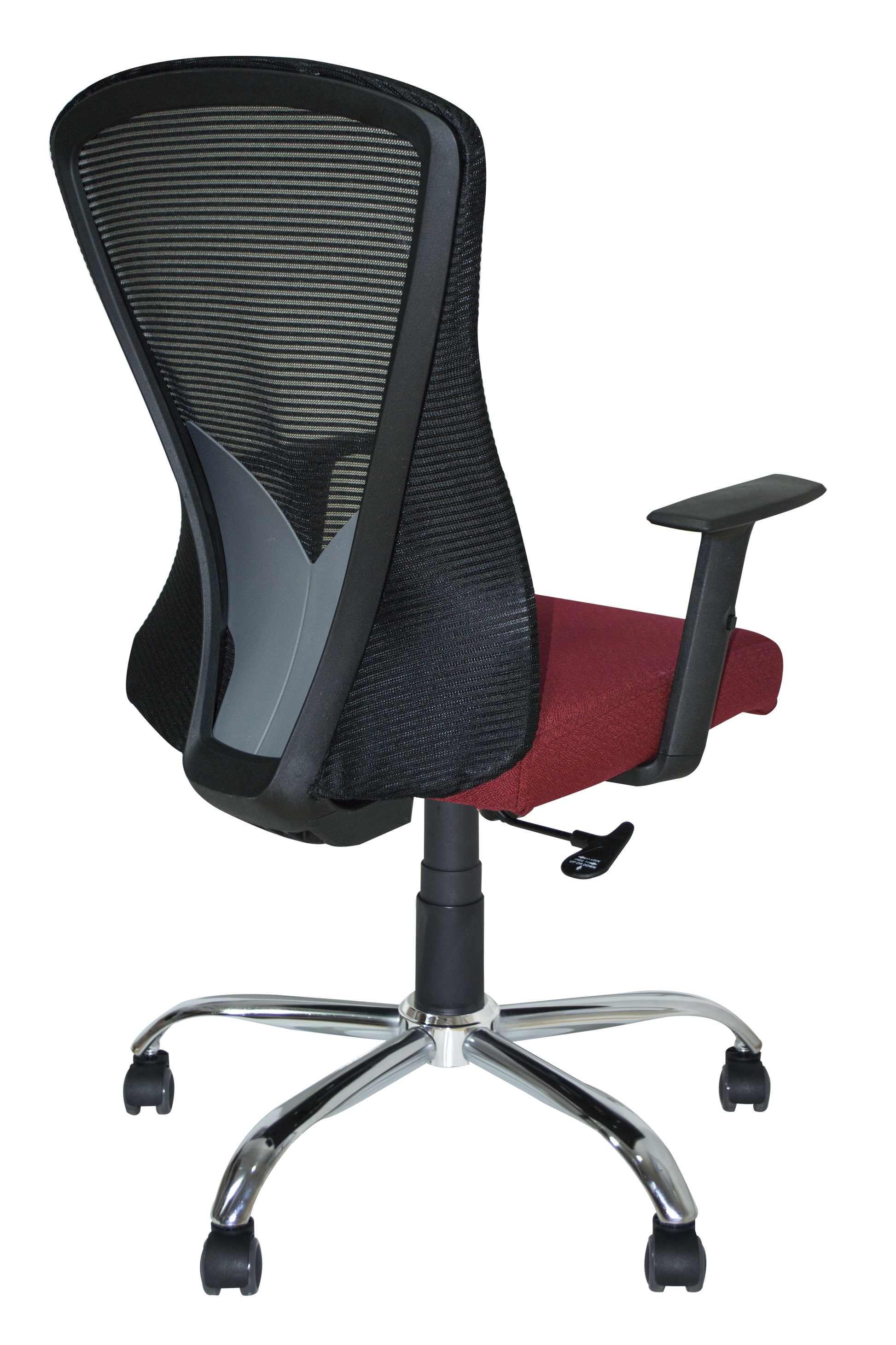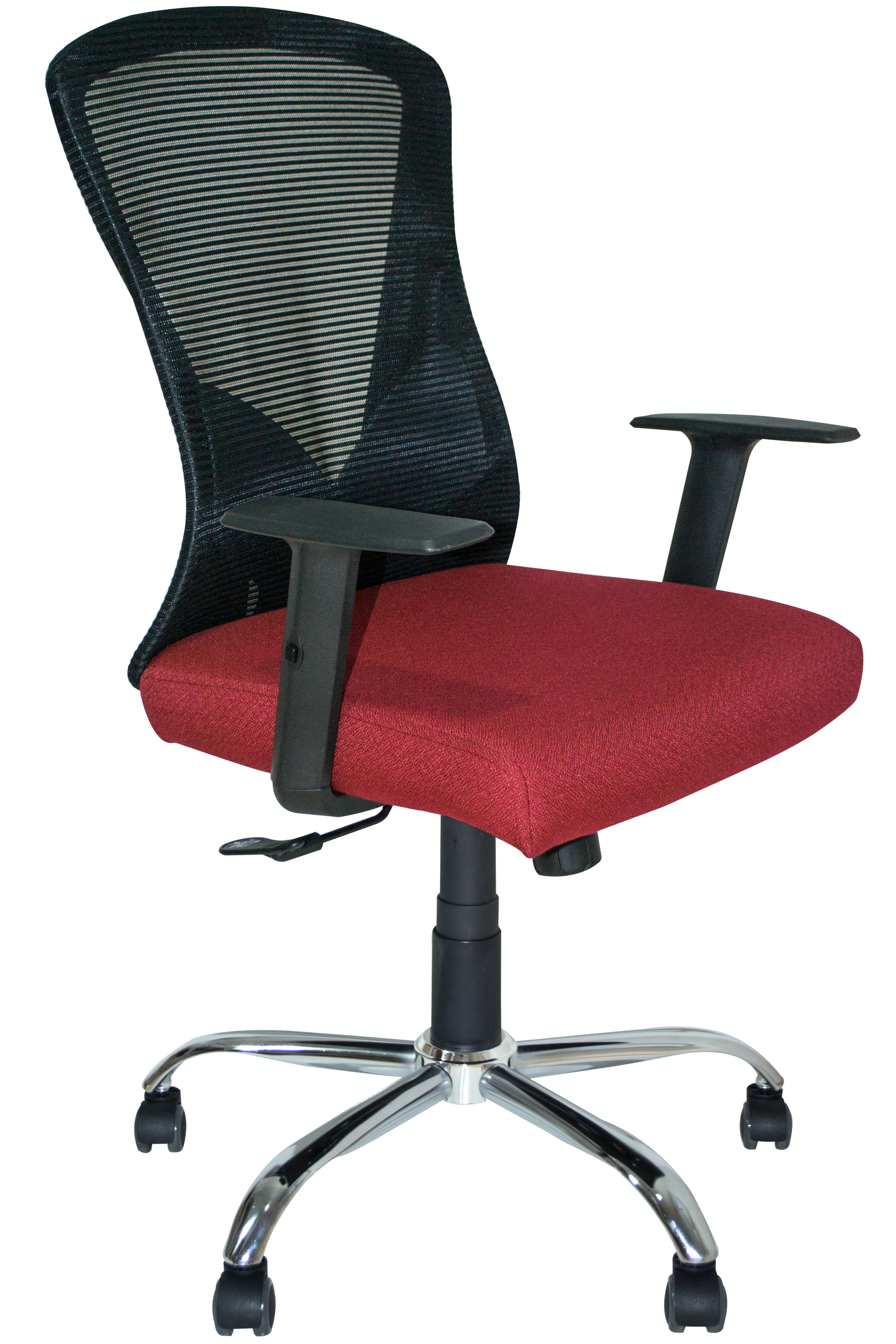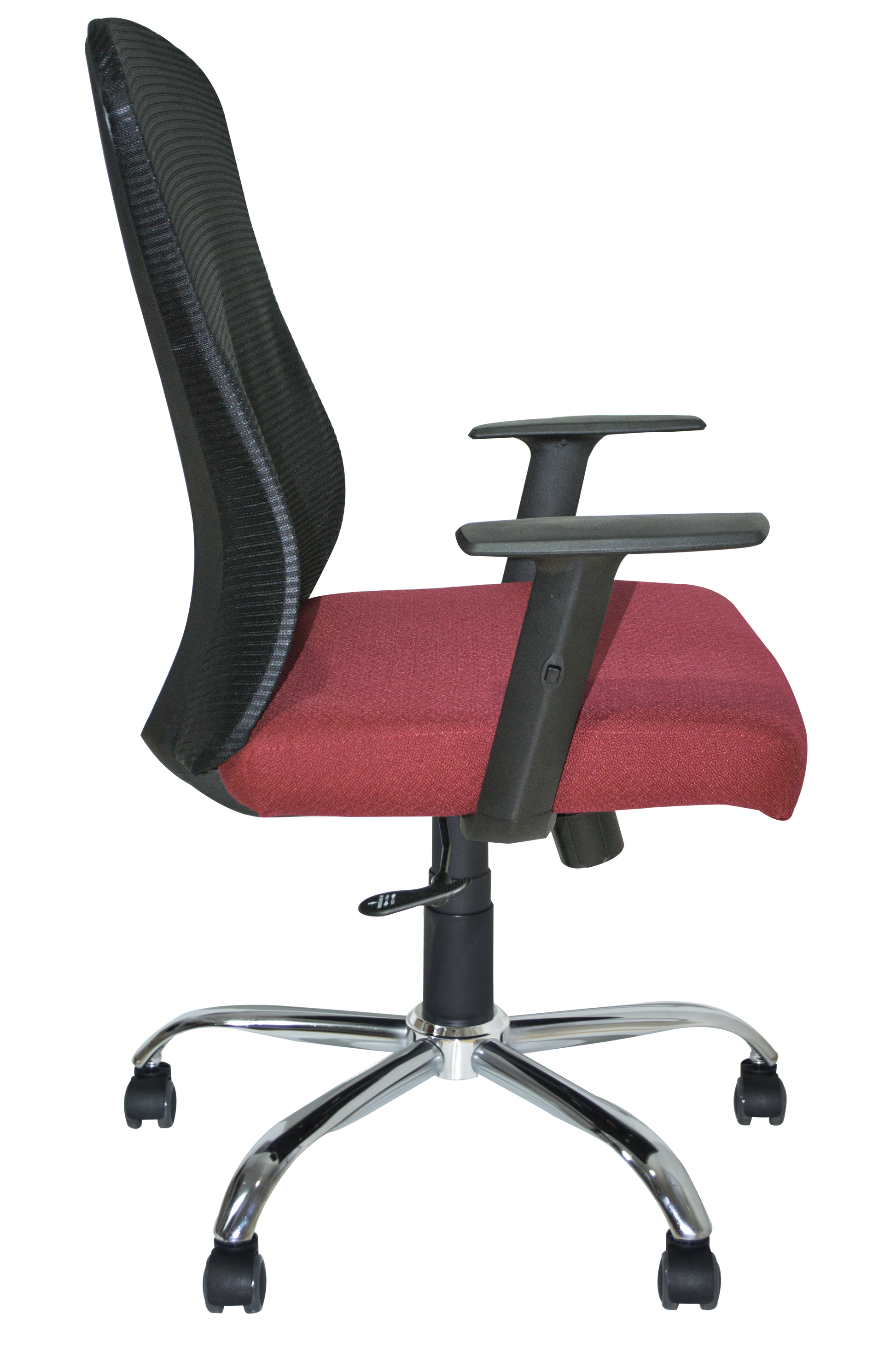 silla ejecutiva con respaldo y asiento en tela, cuerpo color negro, brazos ajustables, mecanismo reclinable, base cromada de 5 puntas y piston para ajuste de altura