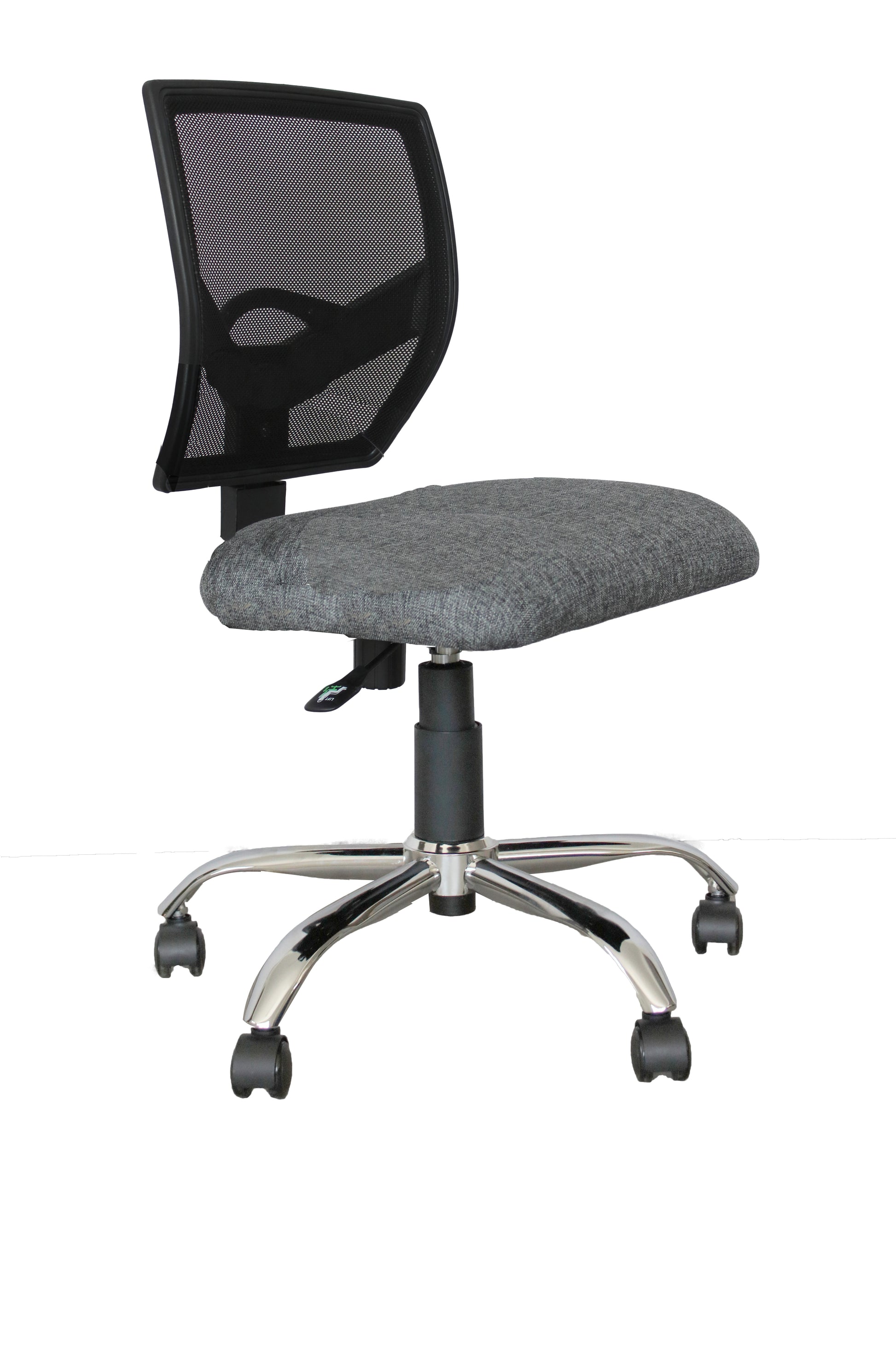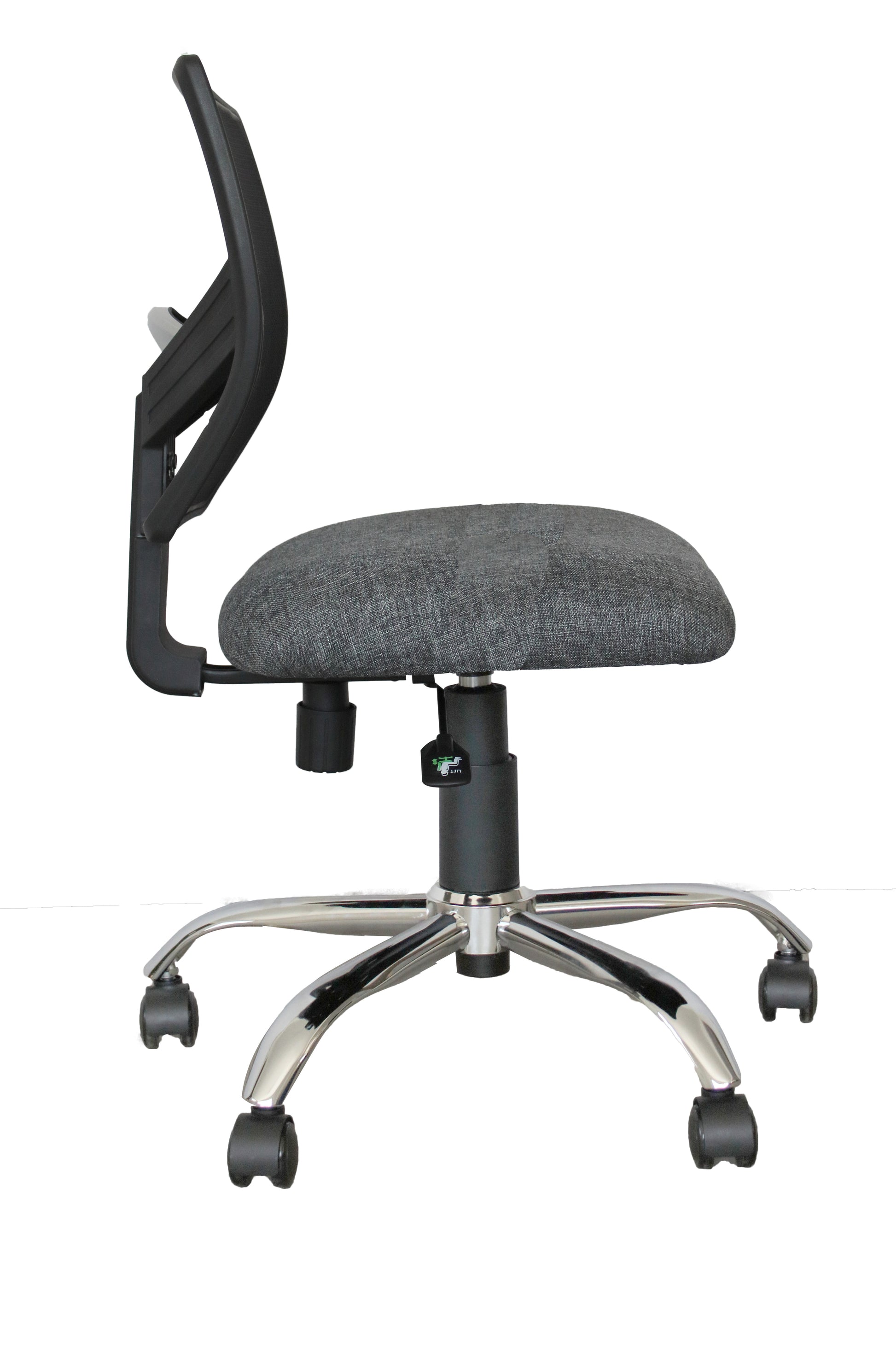 Silla gerencial con respaldo en malla, asiento tapizado en tela colora elegir, base cromada de 5 puntas y piston de gas para ajuste de altura.