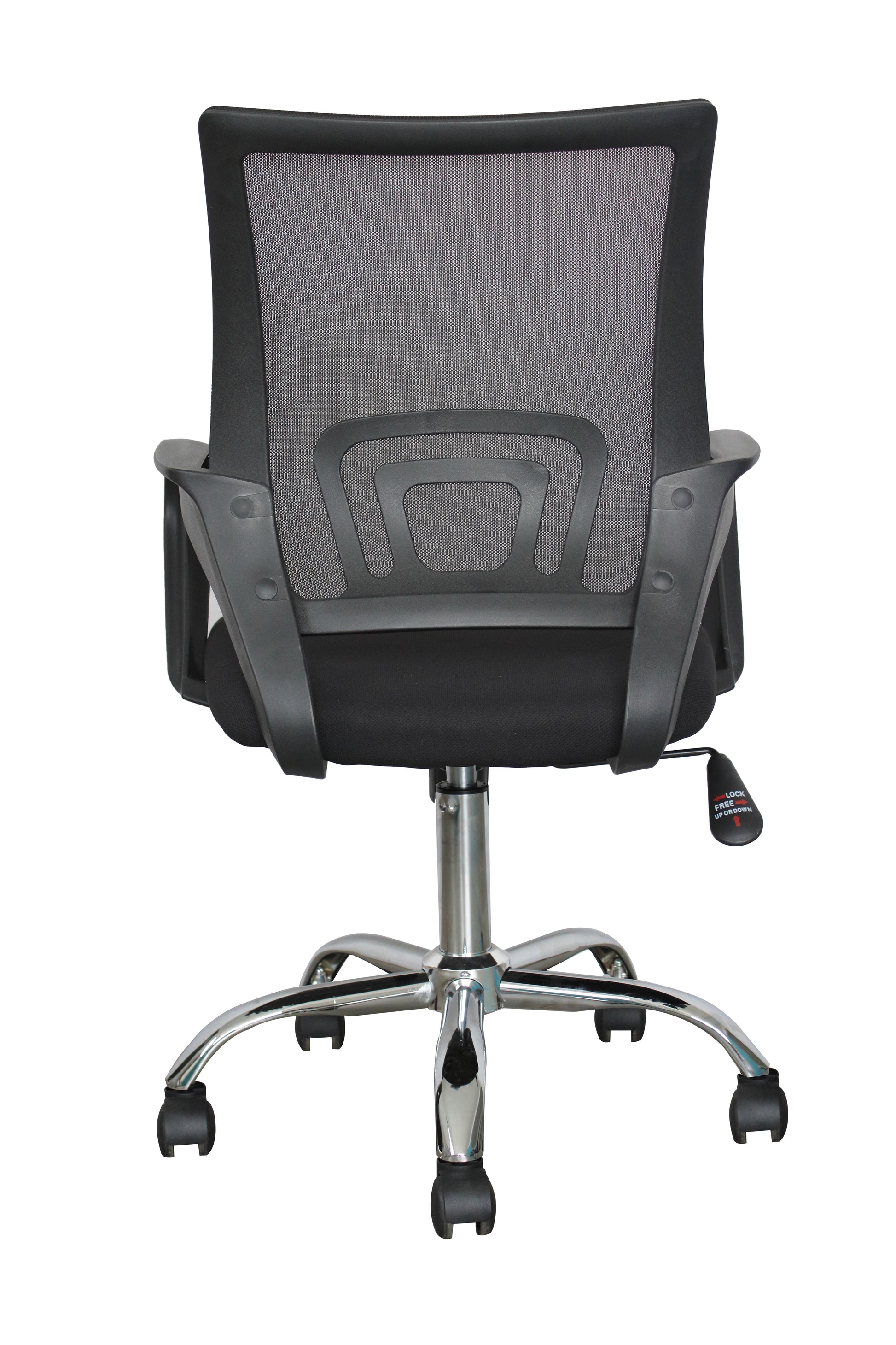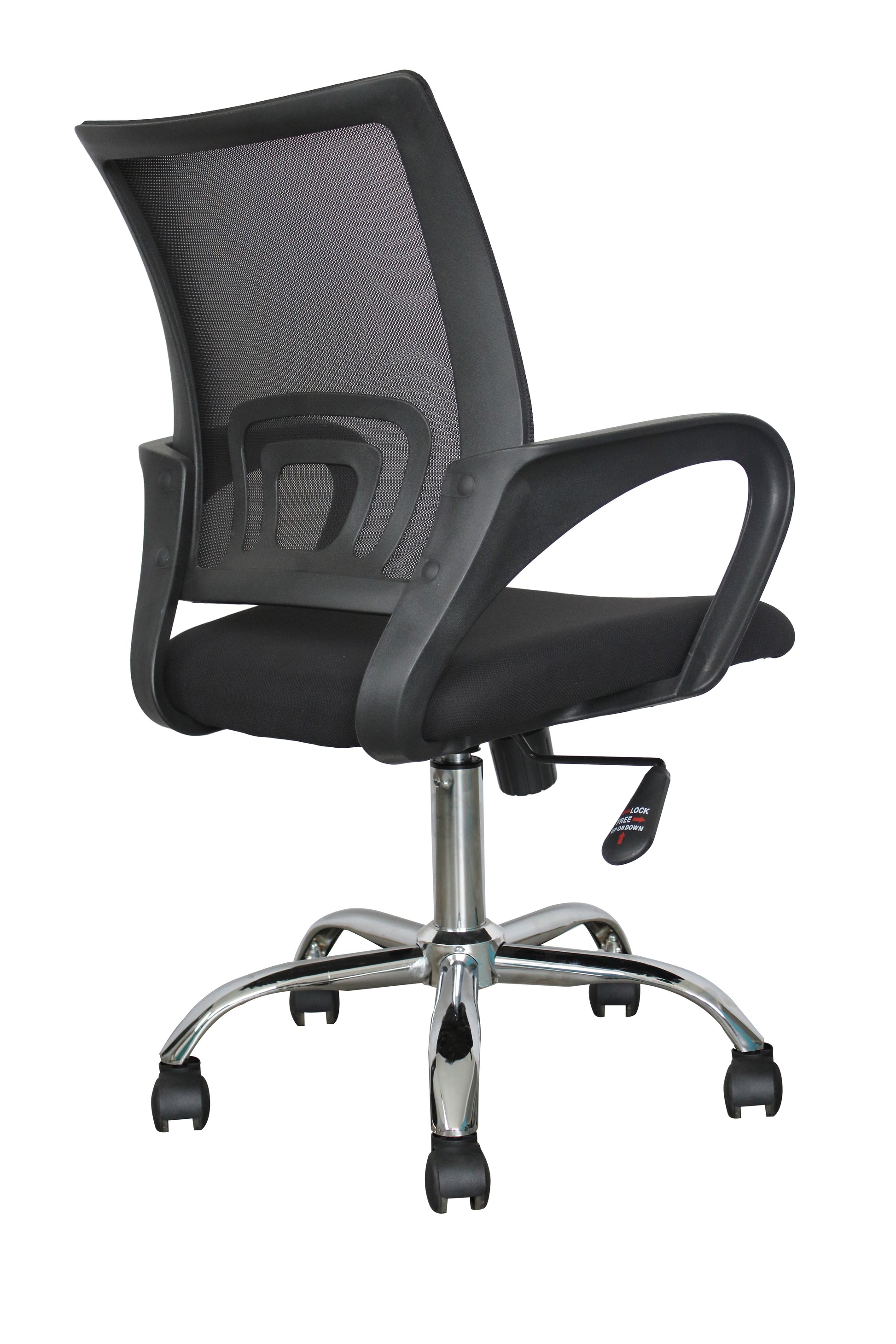 Silla ejecutiva respaldo en malla y soporte lumbar fijo, brazos fijos en color negro, base cromada de 56cm con 5 ruedas, piston de gas, asiento tapizado en tela color negro, mecanismo reclinable para toda la silla.